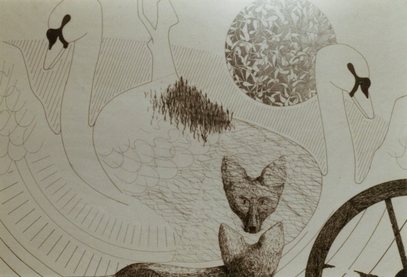 50 x 70 cm - Tuschefeder auf Transparent über eine graue Elefantenhaut - 1989