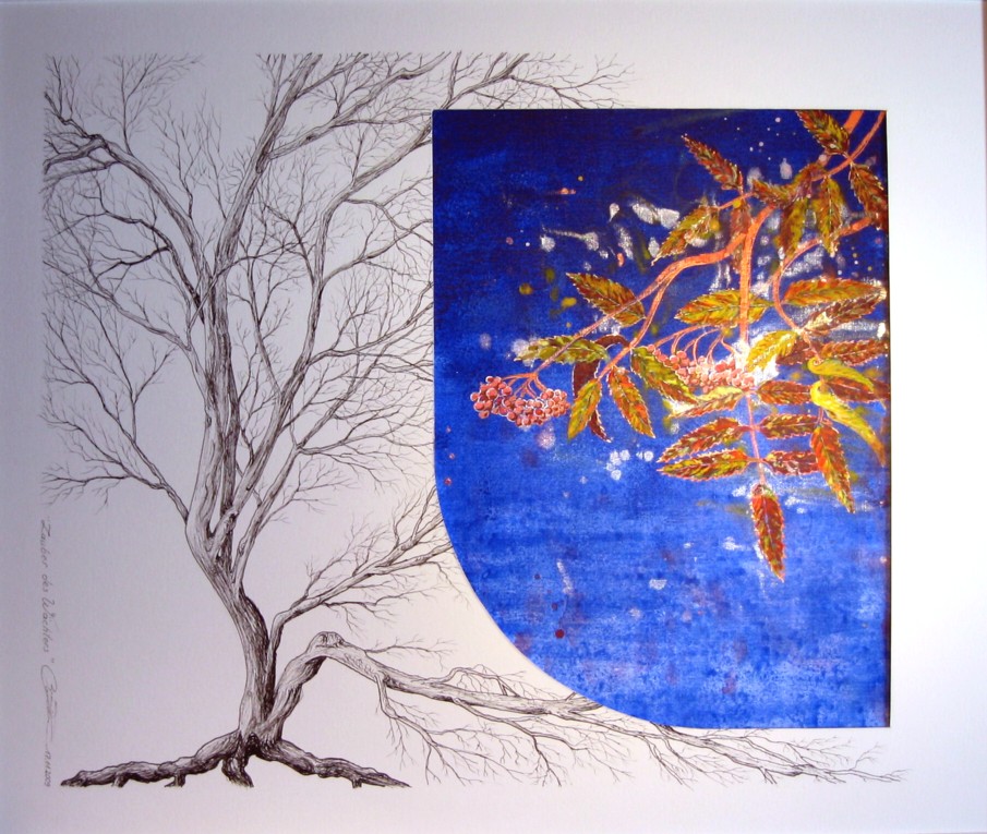 | Das Spiel mit der Symbolik | Tuschefeder und Acryl : Kontrast und Ergänzung |